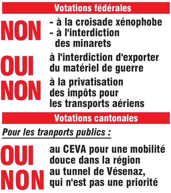 Les positions du SIT sur les sujets soumis à votations le 29 novembre prochain : Vous pouvez également télécharger l’argumentaire du SIT relatif à ces sujets de votations qui vous éclairera sur les enjeux et la position du SIT