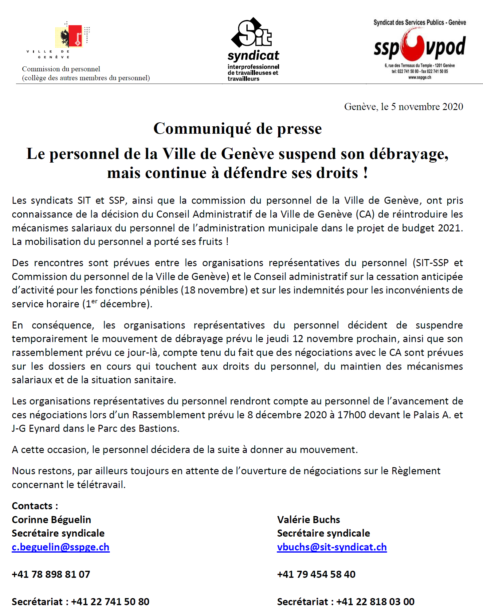 Le débrayage est suspendu mais le personnel continue à défendre ses droits
