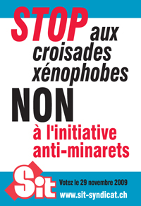 S’opposer à la prétendue « islamisation rampante » de la Suisse ? On a beau chercher, on ne trouve pas en quoi l’interdiction des minarets empêcherait une partie de la population de vivre sa foi et de la pratiquer dans des lieux de culte. Pratique religieuse, faut-il le rappeler, par ailleurs garantie par la Constitution fédérale… Mais, plus grave encore, à l’inutile s’ajoute ici l’expression de l’intolérance, d’une croisade d’un autre temps, et d’une xénophobie crasse faite d’ignorance et de rejet viscéral de l’Autre. Car de l’aveu des initiants eux-mêmes, le minaret est un symbole. Symbole d’une religion prétendument « extérieure à la culture et à l’identité de la Suisse ». C’est donc bien l’Autre, l’Étranger, que cette initiative attaque. Un Étranger identifié de surcroît à une menace obscurantiste et terroriste par les initiants.