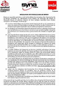 Les travailleurs des entreprises Lisi Construction SA et Oliveira Ferrailleurs SA, avec ou sans permis de séjour, unis et solidaires, avec le soutien de leurs nombreux collègues d’autres entreprises usant de même pratiques, décident de mandater les syndicats Sit, Syna et Unia pour :