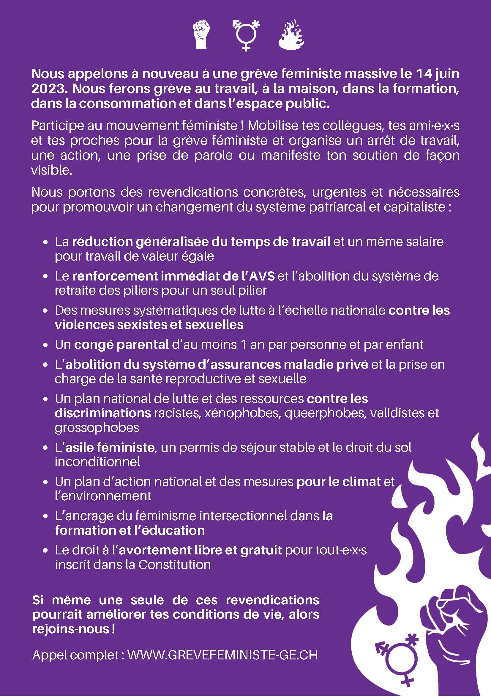 Grève féministe du 14 juin 2023 - Appel du collectif genevois de la grève féministe