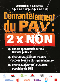Compte tenu la grave pénurie de logements locatifs, la priorité doit être donnée à la création de logements à loyers abordables pour les familles des classes moyennes et modestes. Le SIT appelle à voter 2 X NON à ces lois le 3 mars prochain !