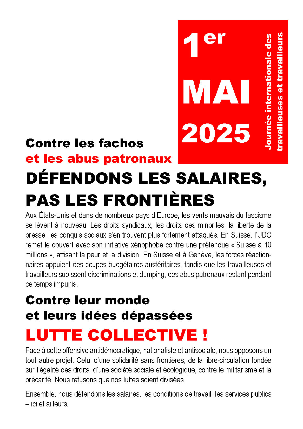 Retrouvez l’appel à manif et le programme du 1er mai 2025 dans le tract ci-dessous (cliquez pour agrandir) :