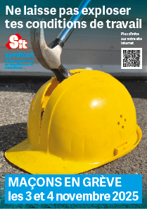 Ils exigent l’arrêt immédiat du temps de déplacement non payé. Ils réclament la suppression des pénalités salariales imposées aux jeunes à la sortie de leur apprentissage, alors même que les patrons se plaignent de pénurie de main- d’œuvre. Ils exigent une réglementation stricte pour mettre fin à la sous-traitance abusive et aux faillites frauduleuses qui gangrènent toujours le secteur. Ils demandent aussi l’instauration de critères contraignants pour encadrer le travail du samedi. Enfin, ils revendiquent la compensation du renchérissement et une augmentation de salaire digne de ce nom pour toutes et tous.