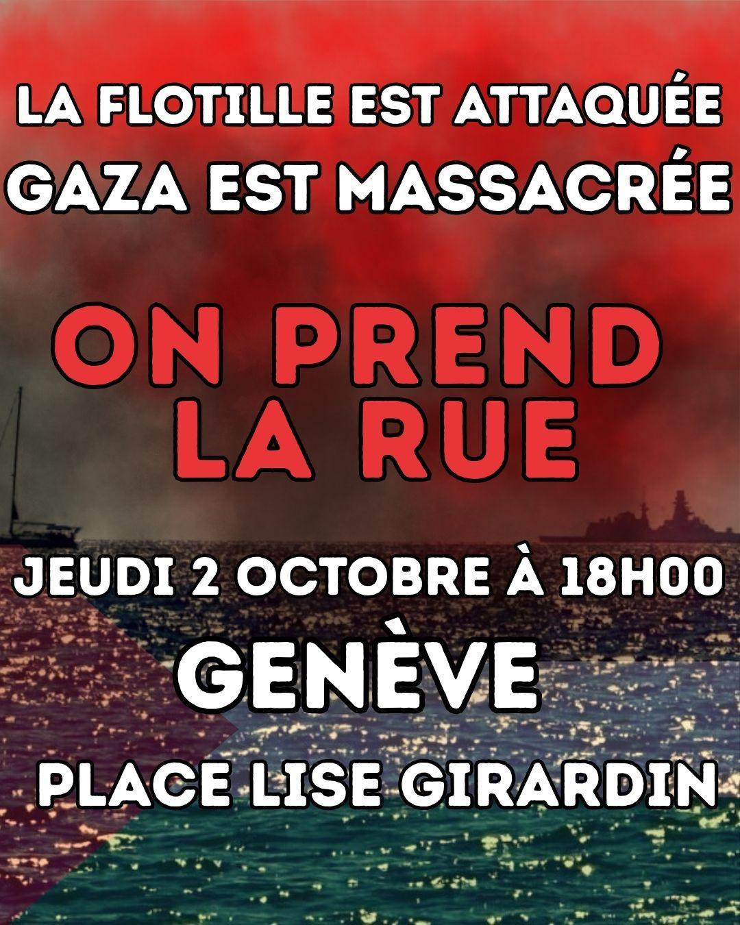 En soutien à la flotille et pour continuer à dénoncer le génocide du peuple palestinien, retrouvons-nous nombreux-euses ce jeudi 2 octobre à 18h à la place Lise-Girardin (manifestation non autorisée).
