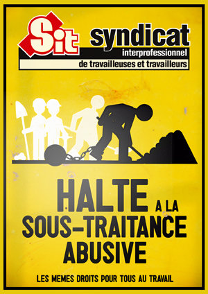 En prenant une marge financière au passage, les entreprises font de plus de plus appel à d’autres entreprises pour faire le travail à leur place. Elles recourent à la sous-traitance abusive, parfois en cascade jusqu’à 3 ou 4 entreprises. Ces travailleurs, quand ils sont payés, le sont en dessous des conventions collectives de travail. En cas de salaires impayés, aucune autre entreprise de la chaîne ne prend la responsabilité de verser le salaire.