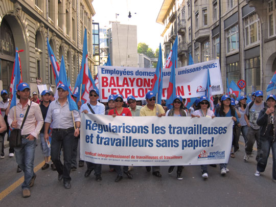 Les travailleuses et travailleurs sans-papiers du SIT se sont mobilisés massivement lors de la manifestation du 1er octobre 2011 à Berne, "Stop à l’hypocrisie". Ils étaient 400 à faire le voyage pour revendiquer leur régularisation.