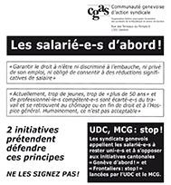 Les syndicats genevois appellent les salarié-e-s à s’opposer aux initiatives cantonales "Genève d’abord !" et "Frontaliers : stop !" de l’UDC et du MCG.