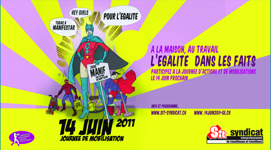 Ces conquêtes sociales ne doivent pas masquer le fait que l’égalité de fait est encore un objectif à atteindre. A l’appel du Congrès des femmes de l’USS, les syndicats ont organisé au plan national une journée de forte mobilisation le 14 juin 2011. A Genève, un collectif, composé des syndicats et de diverses associations défendant les droits des femmes, s’est créé pour organiser des actions aussi multiples et diverses que possible, tant il est vrai que l’égalité recherchée déborde le monde du travail pour recouvrir tous les aspects de la vie des femmes et des hommes.