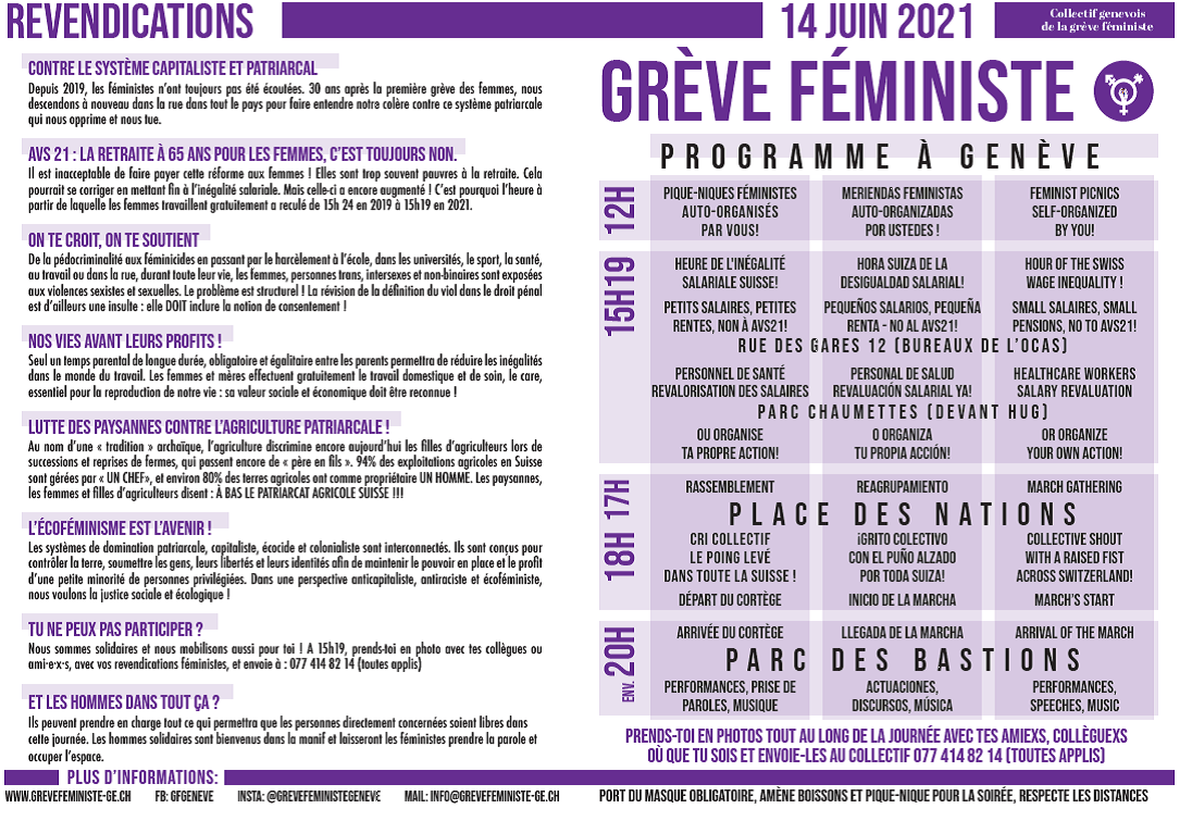 Flyer AVS du collectif genevois de la grève féministe