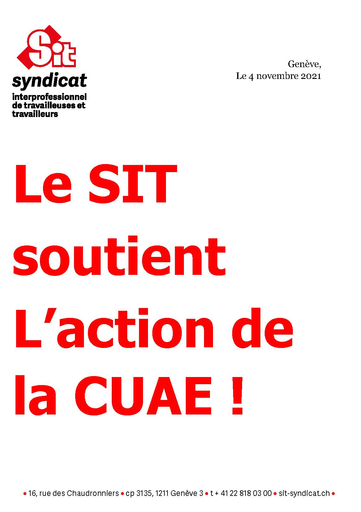 Pour les personnes désirant se syndiquer, vous trouverez des informations sur le site internet du SIT, onglet « Devenir membre » : www.sit-syndicat.ch