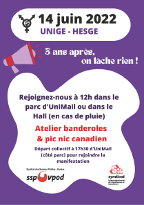 14 juin 2022 : Grève féministe - Manifestation à 18h Place Neuve