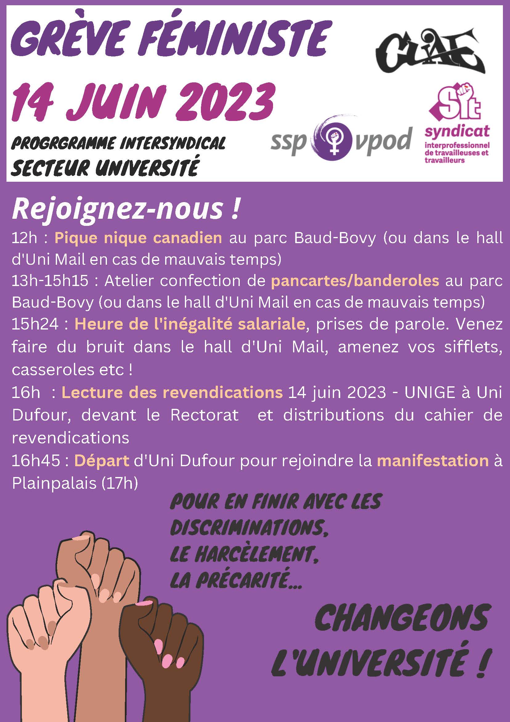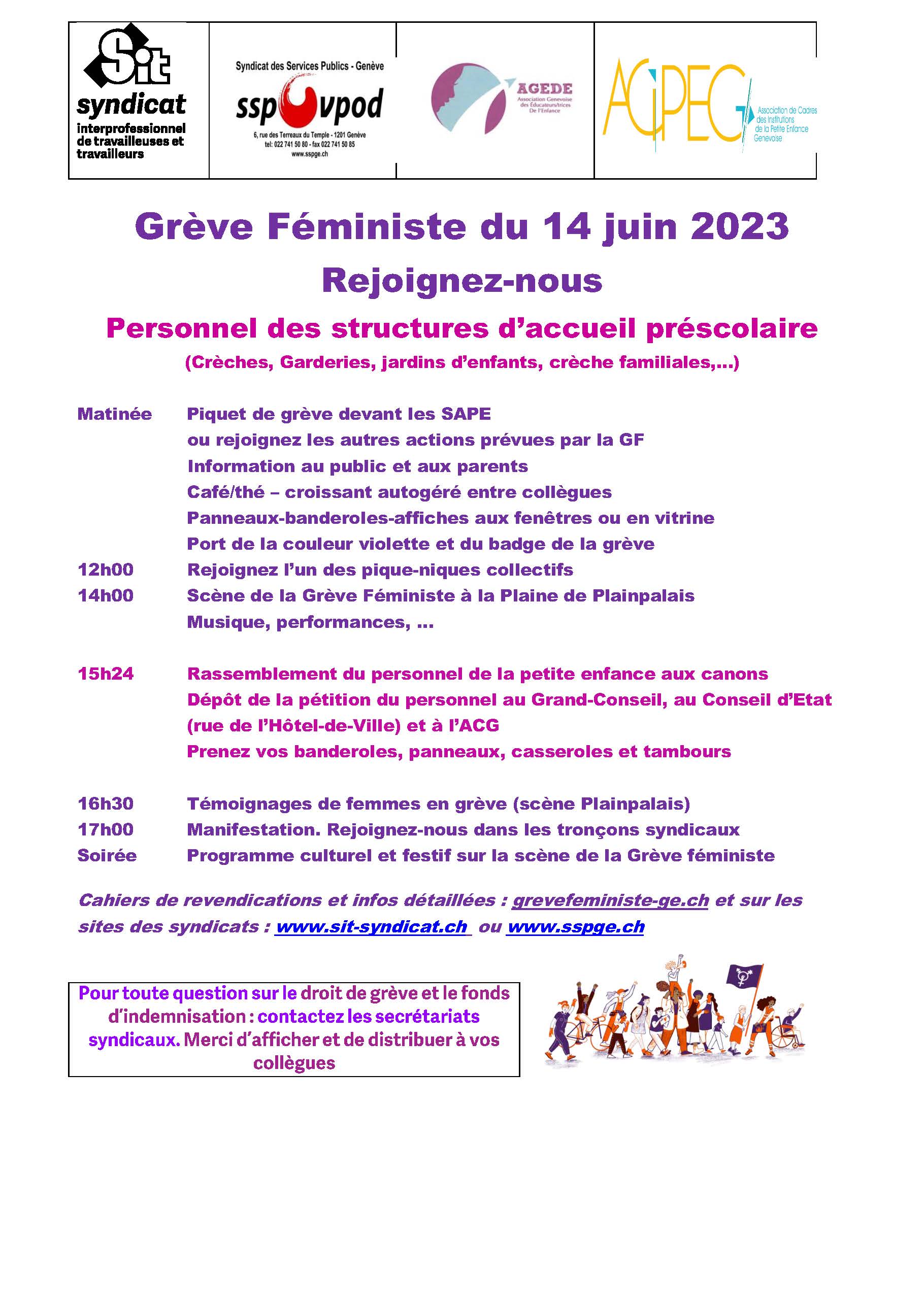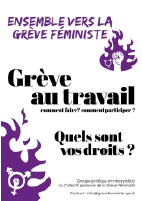 Et consultez sans tarder la brochure « Grève au travail. Comment faire ? Comment participer ? Ensemble vers la grève féministe ! » élaborée par le groupe juridique et intersyndical du Collectif genevois de la Grève féministe