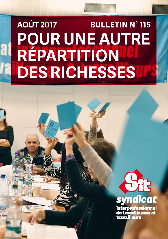 Publication SIT Août 2017 - Le 26 novembre 2016 s’est tenu le 17e Congrès du SIT. Outre de procéder à l’élection de ses instances, le Congrès a pour objectif de dessiner la ligne syndicale que le SIT entend concrètement mettre en oeuvre pour les prochaines années. On trouvera dans ce bulletin la version finale du texte adopté à cette occasion, complété de trois résolutions portant sur les actions syndicales à mener contre les dérives des politiques migratoires, sources de précarité et d’inégalités, sur la revendication de moyens supplémentaires pour rendre effectivement possible « la formation tout au long de la vie », et sur la mobilisation nécessaire pour faire échec au démantèlement des retraites.