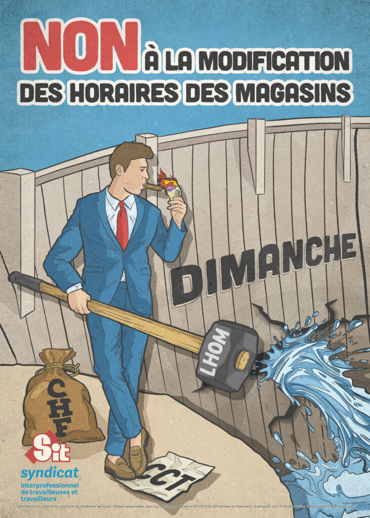 Les patrons et la droite reviennent à la charge : malgré plusieurs votes populaires refusant d’ouvrir les magasins le dimanche sans contrepartie pour le personnel de la vente, les voici qu’ils retentent encore une fois le coup de modifier en ce sens la loi sur les horaires d’ouverture des magasins (LHOM) !