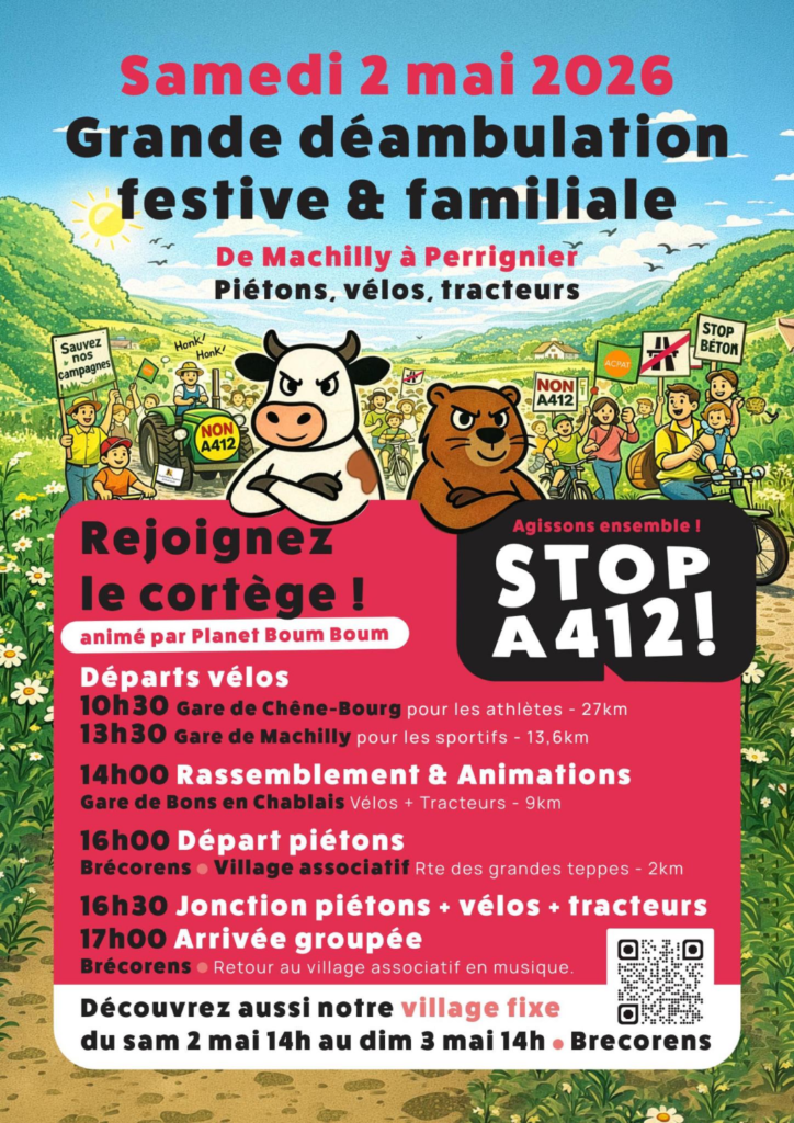 Depuis de nombreuses années, la mobilisation s’organise contre un projet d’autoroute de 16 km qui vise à relier Machilly à Thonon (Haute-Savoie). Représentant un coût de plusieurs millions d’euros pour les collectivités publiques, cette autoroute réclamée notamment par Danone/Évian pour du transport de marchandises, aura pour conséquence la destruction de la plus grande forêt de plaine du bassin lémanique et de dizaines d’hectares agricoles. Elle augmentera le trafic et les embouteillages, sans aucun soutien au développement de lignes de bus efficaces et à l’adaptation du Léman Express aux besoins réels.